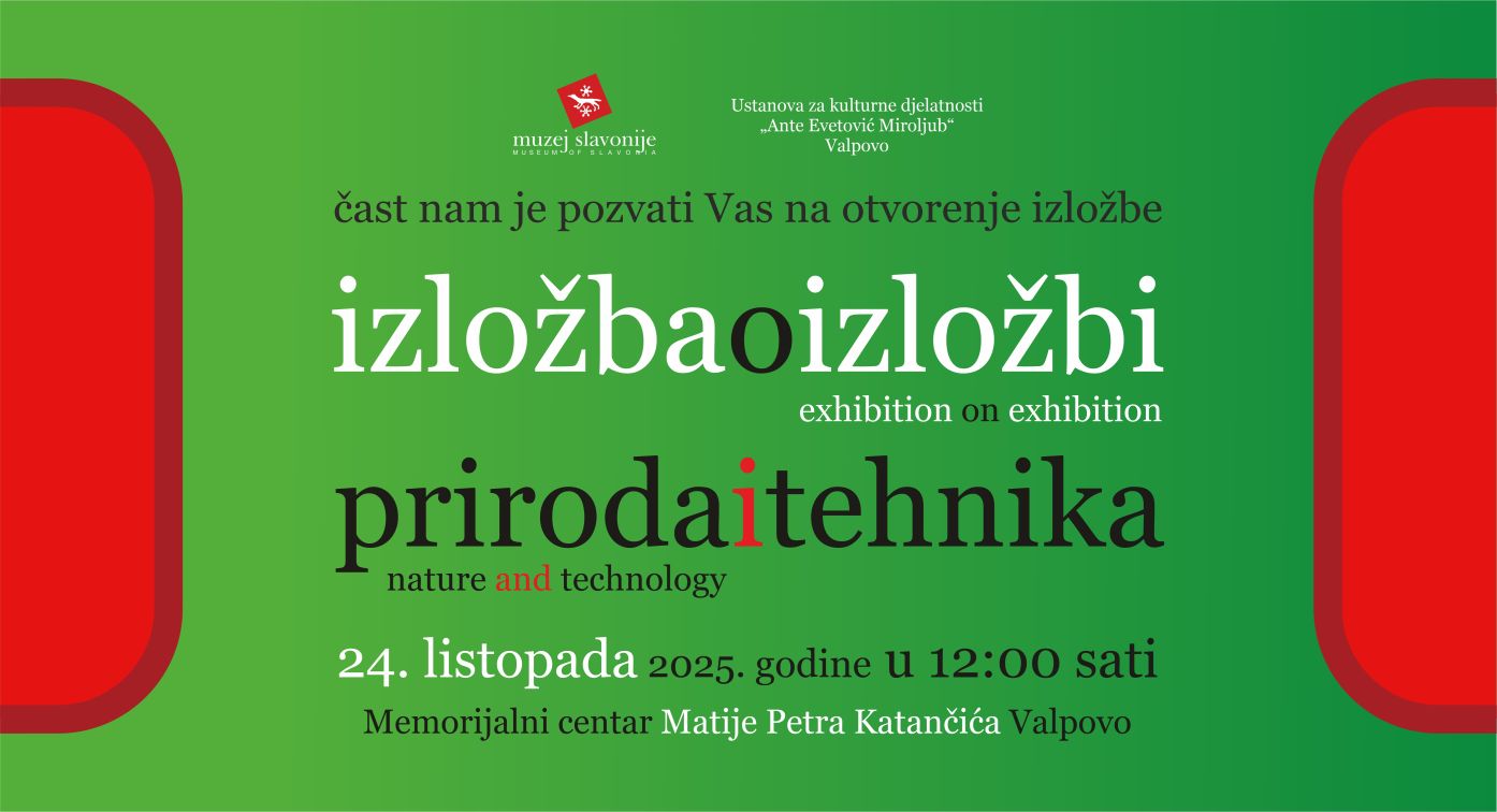 Izložba o izložbi Priroda i tehnika nastavak je nagrađene izložbe Priroda i tehnika te još jedna prilika za otkrivanje biomimikrije, novog pristupa u tehnologiji i dizajnu kroz oponašanje prirodnih oblika i sustava. Jeste li primijetili kako su sjemenke suncokreta spiralno složene? Znate li da mravi i internet komuniciraju na sličan način? Kako zaštiti ptice od udara u staklene površine? Trebamo li se bojati uboda igle? Kako se od udara štite životinje i biljke a kako se štitimo mi? Da bi saznali odgovore zavrtite spiralu dizajna, prelistajte slikovnice, zavirite iza vratašca, riješite kviz znanja, pritisnite gumb… Na izložbi kroz igru otkrijte i istražite prirodu kao vodiča za funkcionalna i održiva rješenja. U tome će vam pomoći i interaktivni vodič. Otvorenje izložbe biti će 24. listopada 2025. godine u Memorijalnom centru Matije Petra Katančića u Valpovu na Trgu kralja Tomislava 12. u 12:00 sati.
