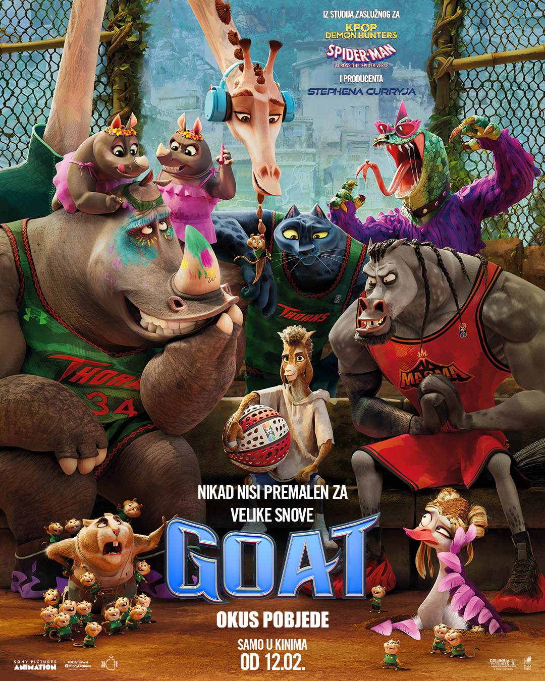 Sadržaj: Iz Sony Pictures Animationa, studija koji stoji iza Spider-Mana™: Across the Spider-Verse i umjetnika zaslužnih za KPop Demon Hunters, stiže GOAT, originalna akcijska komedija smještena u svijet naseljen isključivo životinjama. Priča prati Willa, malog jarca s velikim snovima koji dobiva priliku života – pridružiti se profesionalcima i zaigrati rikomet, visokointenzivan, mješoviti sport s punim kontaktom, kojim dominiraju najbrži i najžešći životinjski sportaši na svijetu. Willov novi tim nije oduševljen što imaju malenog jarca u svojoj postavi, ali Will je odlučan revolucionirati ovaj sport i jednom zauvijek dokazati da “mali mogu biti veliki igrači!